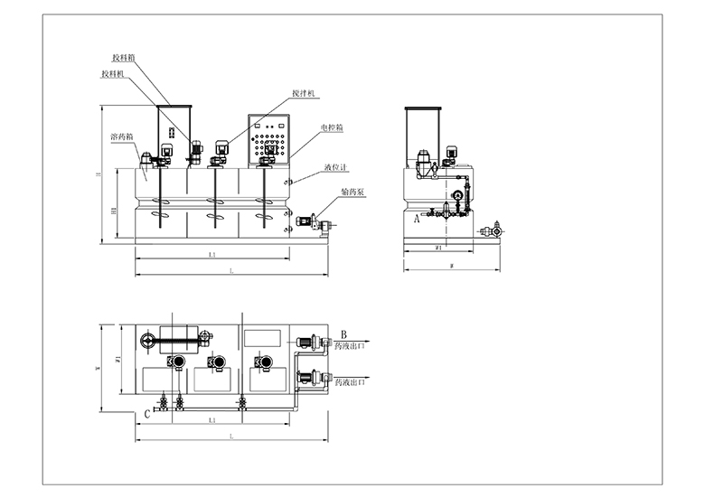 定量投药装置计量准确,采用无级变速器驱动,可方便调整供料量、配制药剂浓度范围大。