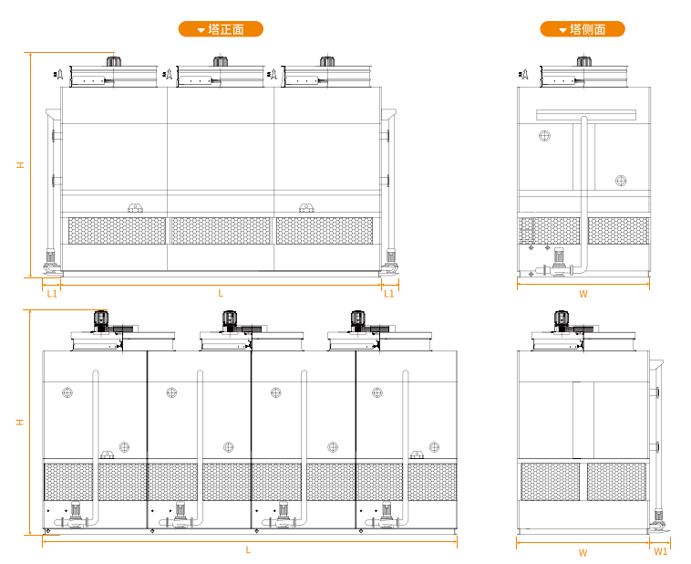 合理的检修空间,为设备的维护保养提供便利,可通过检修门进入塔内维护,关键部位管束和喷淋系统的维修可以更直接更方便。