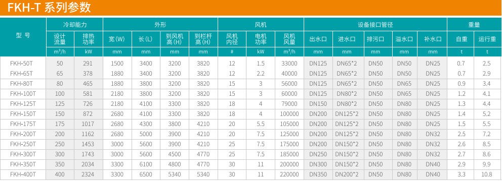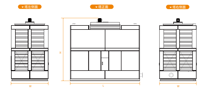 5.横流塔为模块化设计,单体两面进风,模块组合后进风面无变化,电机功耗不变。